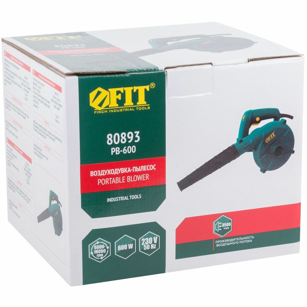 Воздуходувка-пылесос FIT 600 Вт; 6000-16000 об/мин; 3500 л/мин; 1,58 кг; БС щеток; коробка