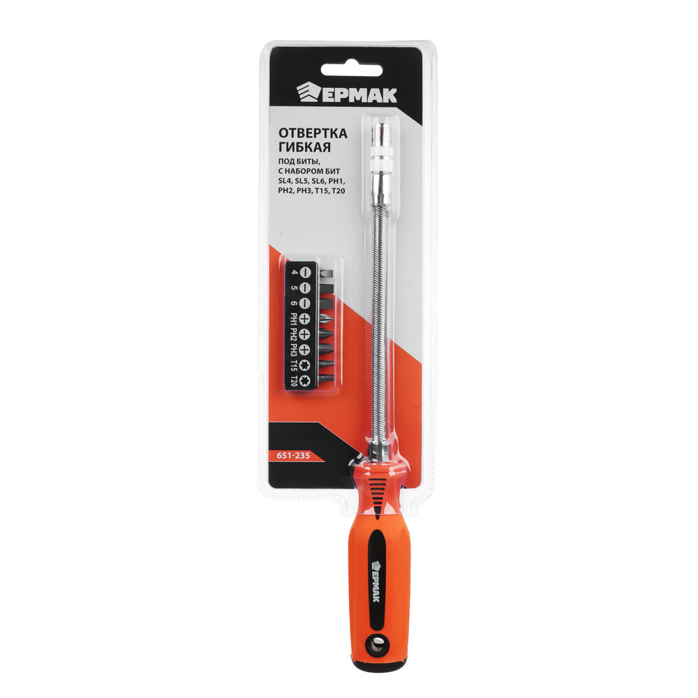 Купить Ермак Отвертка гибкая под биты, с набором бит SL4, SL5, SL6, PH1, PH2, PH3, T15, T20