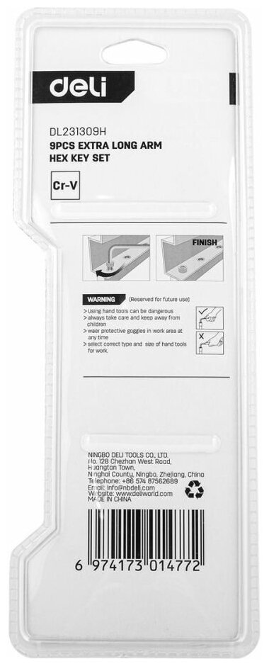 Набор шестигранных ключей сверхдлинных Deli DL231309H 9 шт