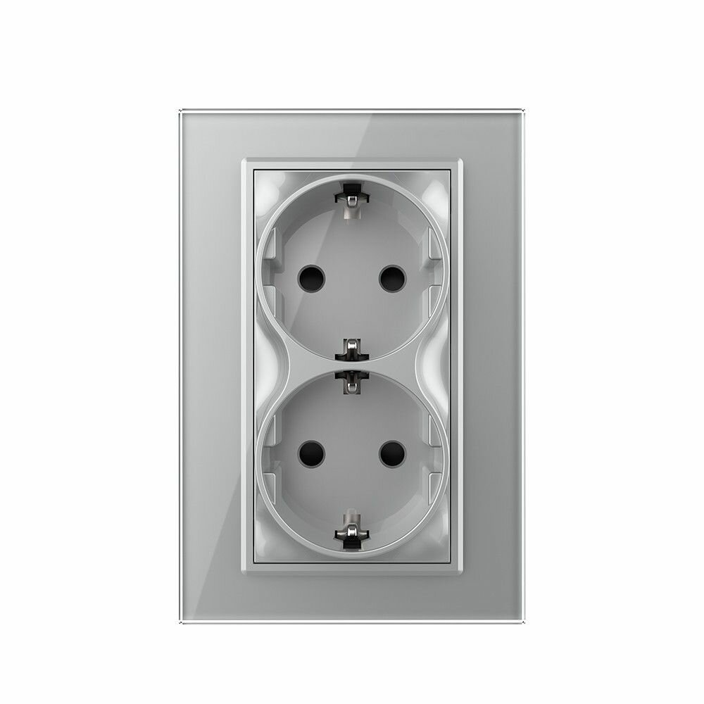 Купить Розетка электрическая двойная 1 пост с заземлением, рамкой, защитными шторками 16A, цвет серый LIVOLO ORIGINAL