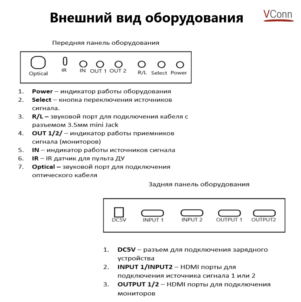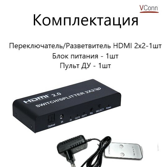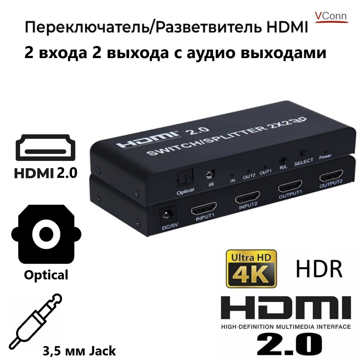 Переключатель/Разветвитель HDMI V2.0 2х2 с выделением аудио, Spdif, мини Jack, Ultra HD, 4Кх2К,3D /VConn/ интересное: