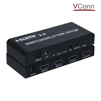 Купить Переключатель/Разветвитель HDMI V2.0 2х2 с выделением аудио, Spdif, мини Jack, Ultra HD, 4Кх2К,3D /VConn/