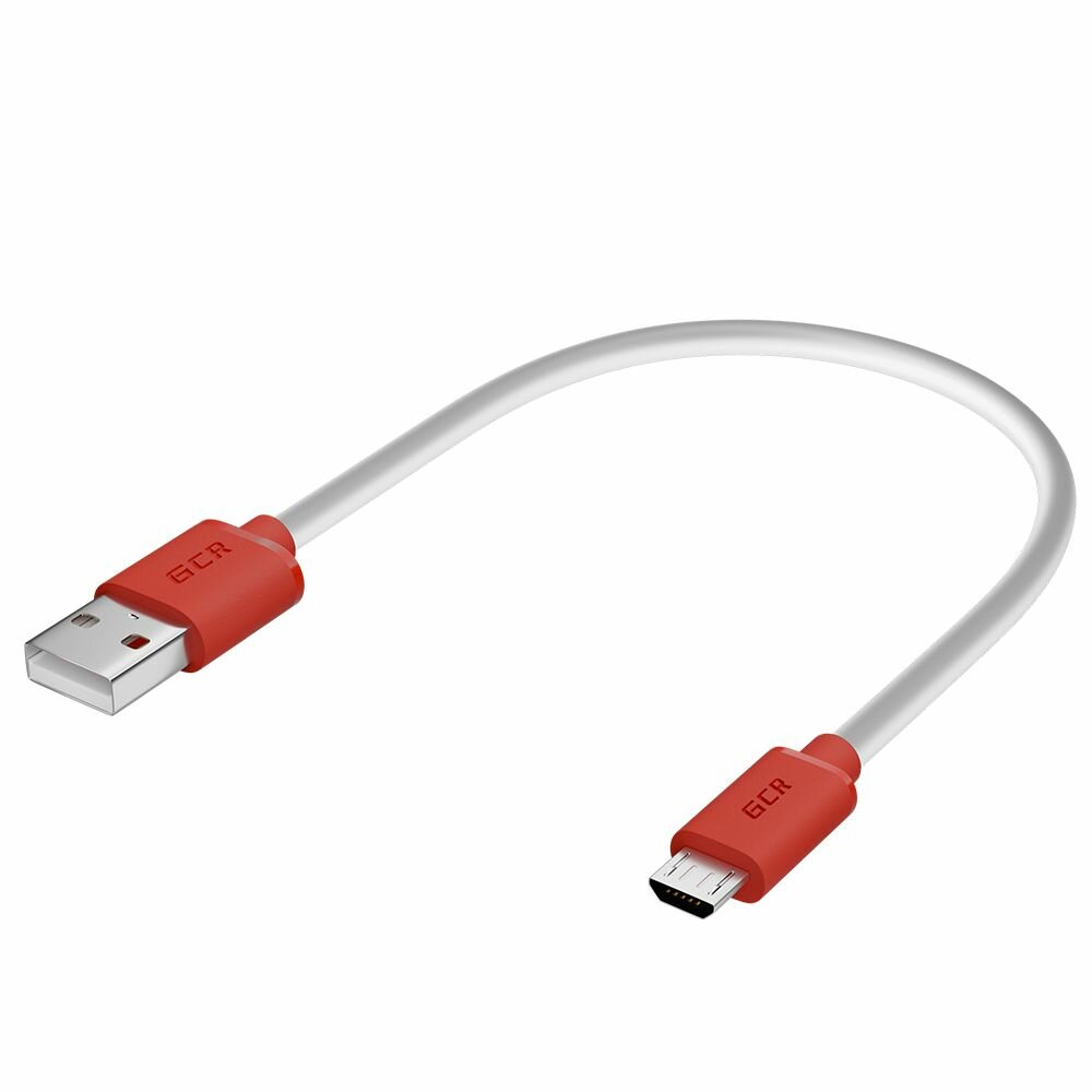 GCR Кабель 0.5m MicroUSB, белый, красные коннекторы, быстрая зарядка, 28/24 AWG, GCR-53214
