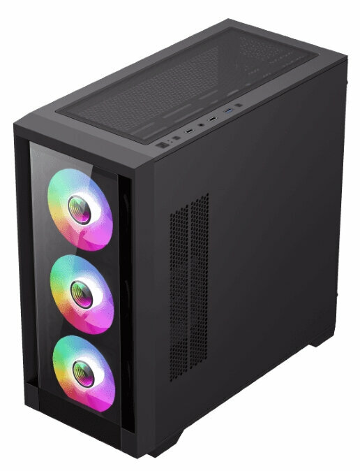 Компьютерный корпус mATX, без блока питания Gamemax DEFENDER TG mATX case, black, w/o psu, w/1xUSB3.0+2xUSB2.0, Combo Audio, w/3x12cm ARGB front fan (
