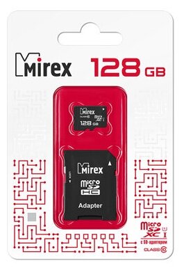 Карта памяти Mirex microSD, 128 Гб, SDXC, UHS-I, класс 10, с адаптером SD Mirex 1910889 .