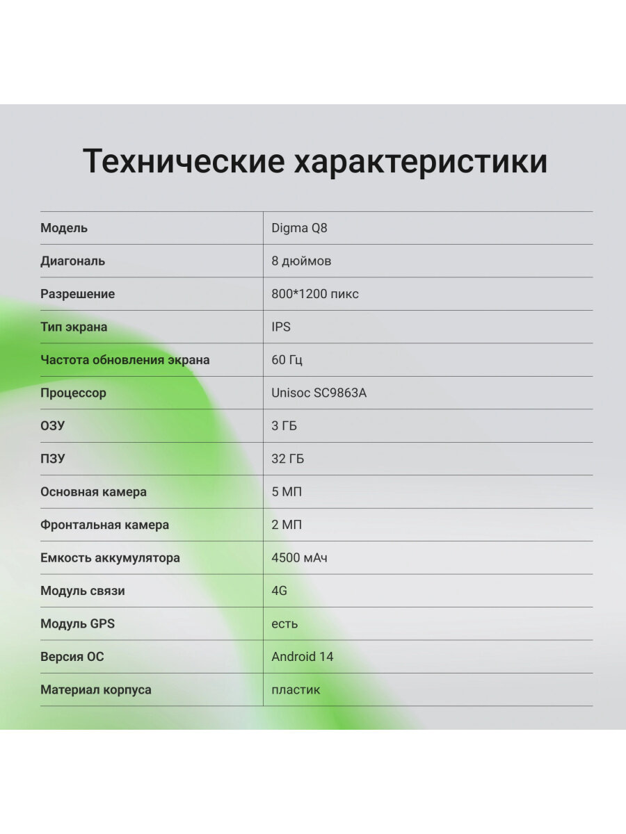 Купить 8" Планшет Digma Q8 3/32 GB SC9863A 4G, 1280 x 800, Android 14, голубой [da6b8p01]