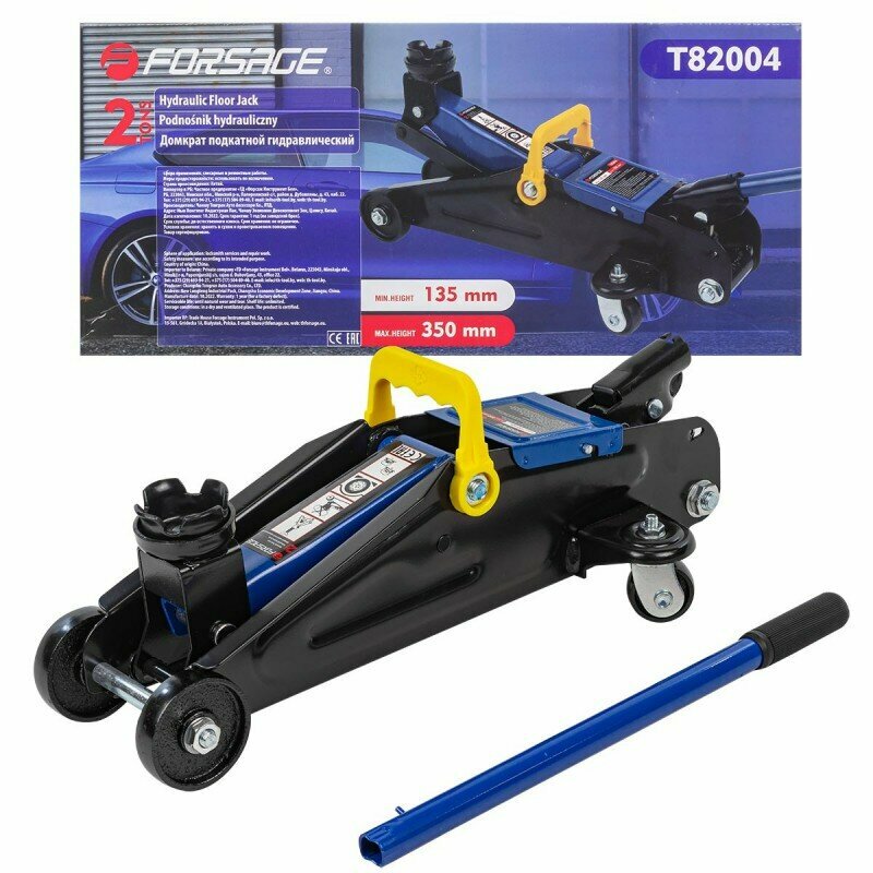 FORSAGE F-T82004 Домкрат подкатной гидравлический 2т+чехол для хранения (h min - 135мм, h max - 350мм)