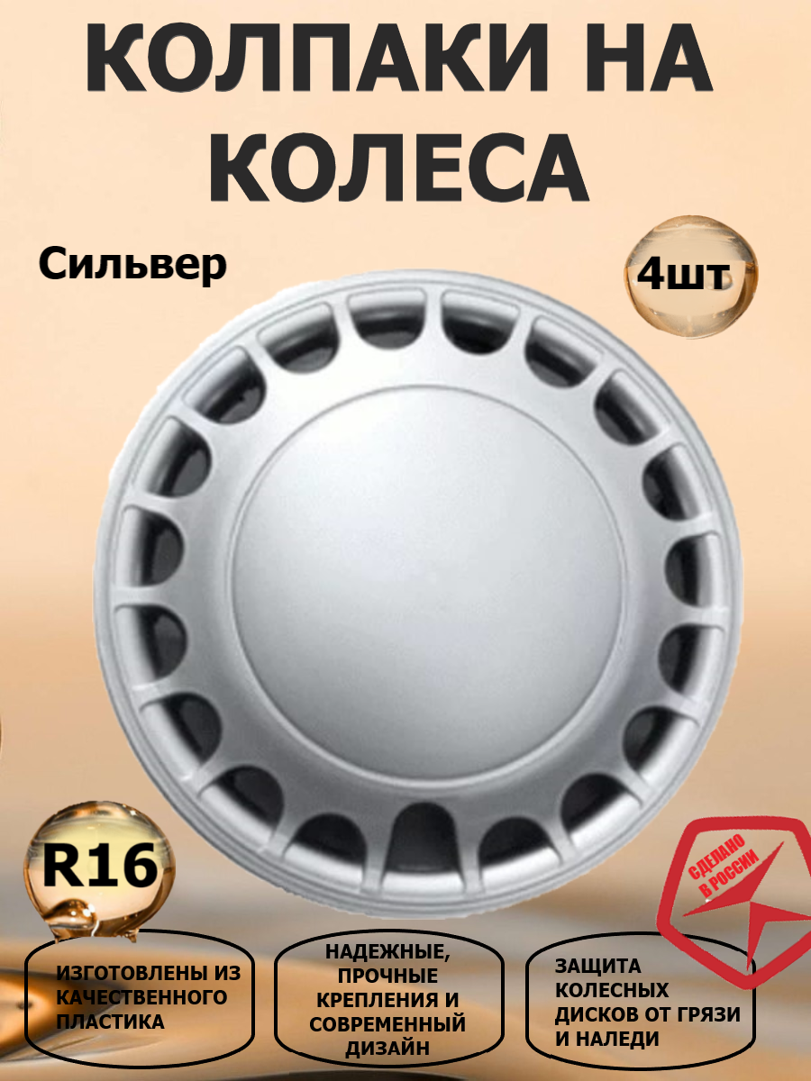 Колпаки на колеса R16 Сильвер, цвет серебристый, 4 штуки в комплекте интересное: