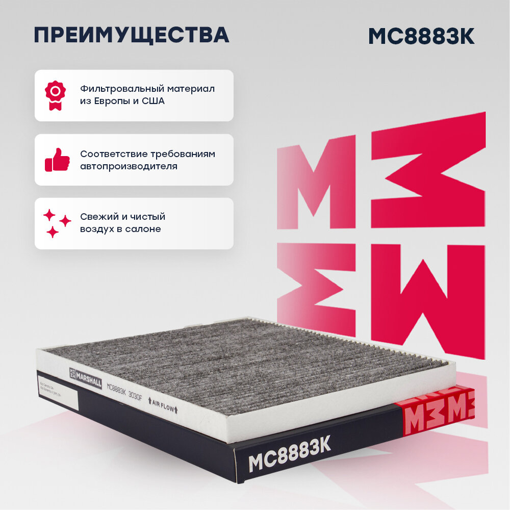 Купить Фильтр салонный угольный MARSHALL MC8883K для Kia Cerato 04-, Kia Sorento II (XM) 09-, Kia Spectra 01- // кросс-номер MANN CU 2434