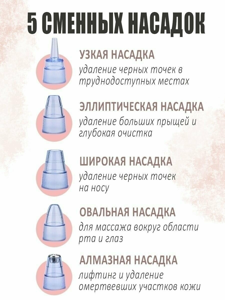 Вакуумный очиститель пор, инструмент чистки лица, аппарат для удаления черных точек, прыщей, прибор для очищения кожи от акне, угрей, сальных нитей, маска увлажняющая, набор профессиональный косметический, переходник