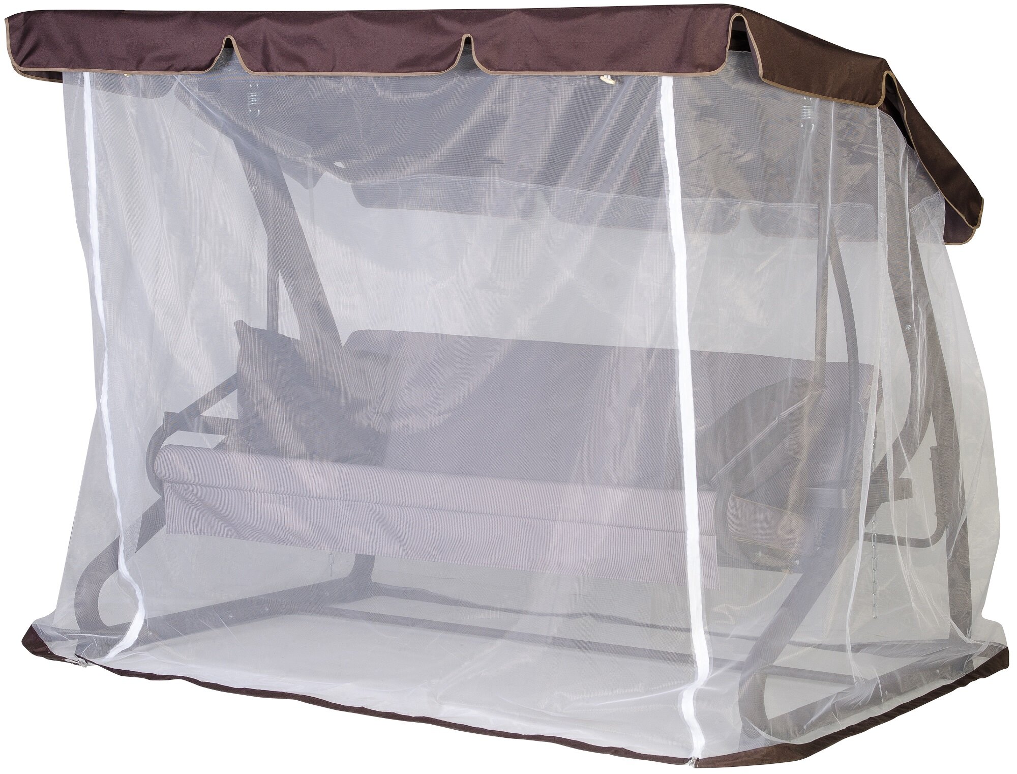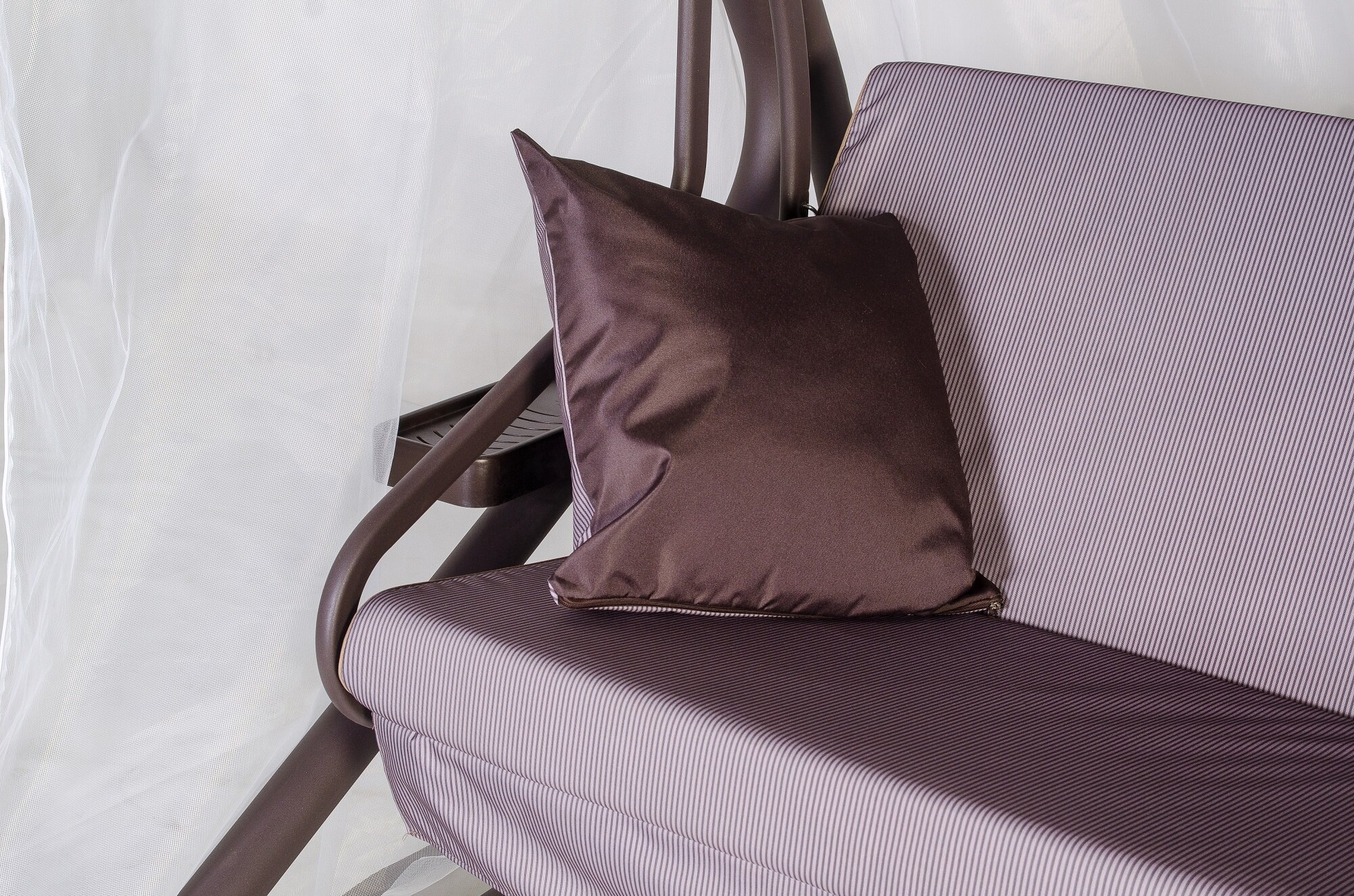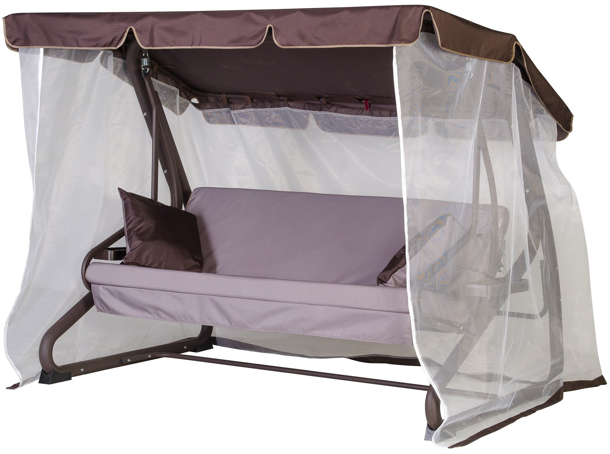 Качели садовые 4-х местные Ольса Шатер ткань панама каркас коричневый, ткань полоска бежево-коричневная