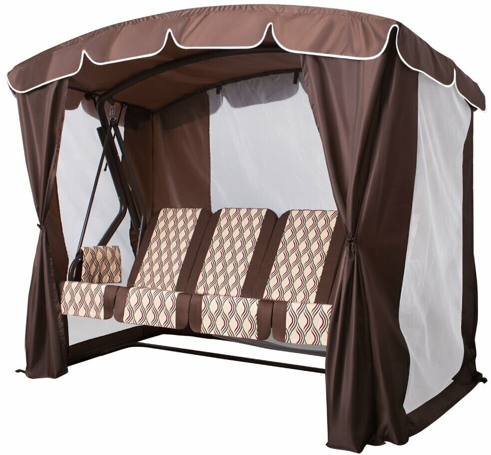 Качели садовые 4-х местные Ольса Шатер ткань панама каркас коричневый, ткань полоска бежево-коричневная