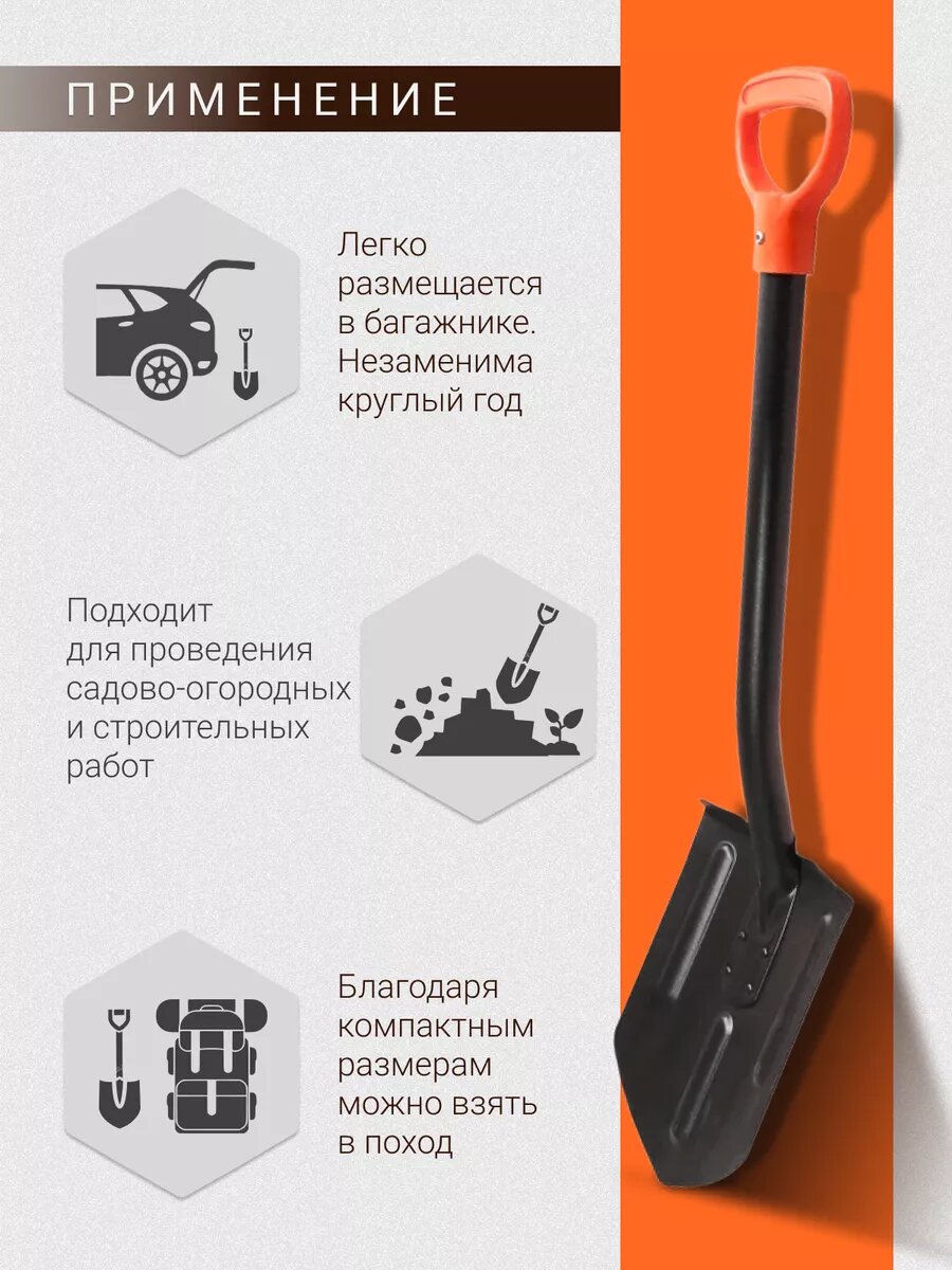 Лопата автомобильная, острая, L = 83 см, металлический черенок, с ручкой интересное: