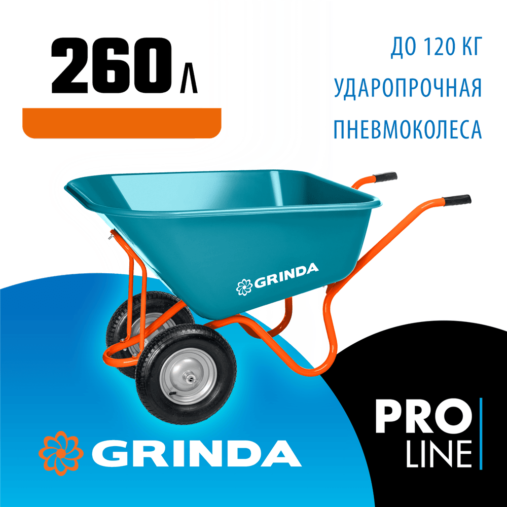 Садовая тачка с кузовом увеличенного объема 260л GRINDA GP-1, г/п 120кг, ударопрочный пластиковый ку