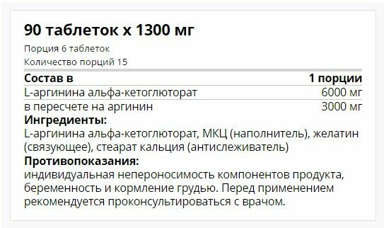 | Основной ингредиент | аргинин / аргинин альфа-кетоглутарат |