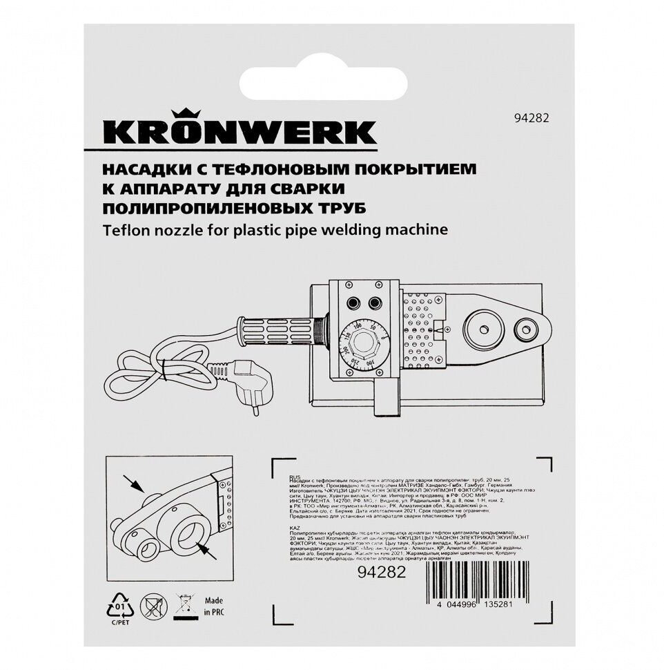 KRONWERK Насадки с тефлоновым покрытием к аппарату для сварки полипропилен труб 20 мм 25 мм 94282