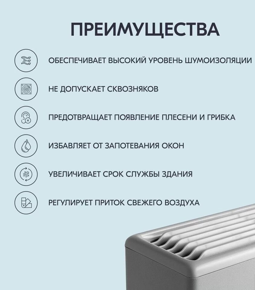 Приточный клапан VAKIO Kiv New, серый, с фильтром F6, 60 м3/час интересное: