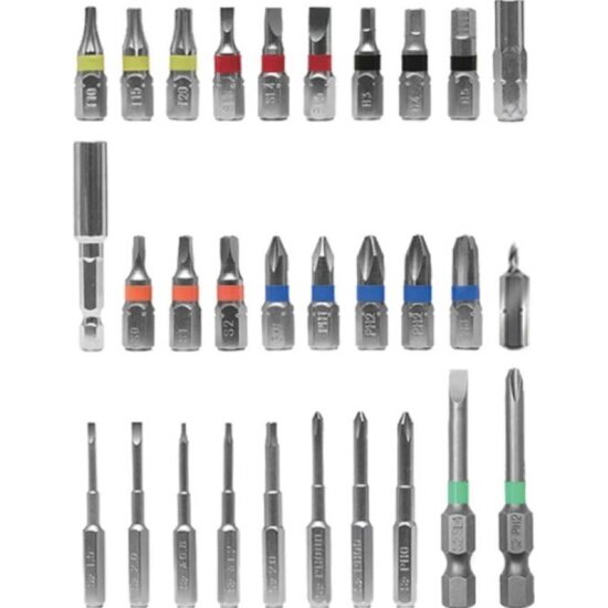 | Плюсы: | удобная отвертка. в наборе все распространенные биты. |