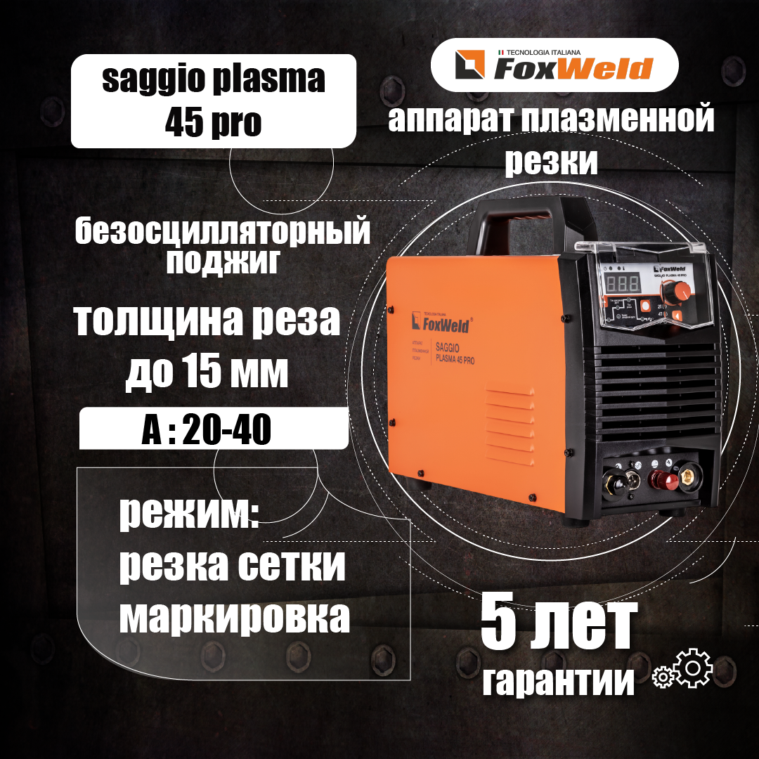 Аппарат плазменной резки FoxWeld SAGGIO PLASMA 45 PRO (макс. толщина реза 15мм) интересное: