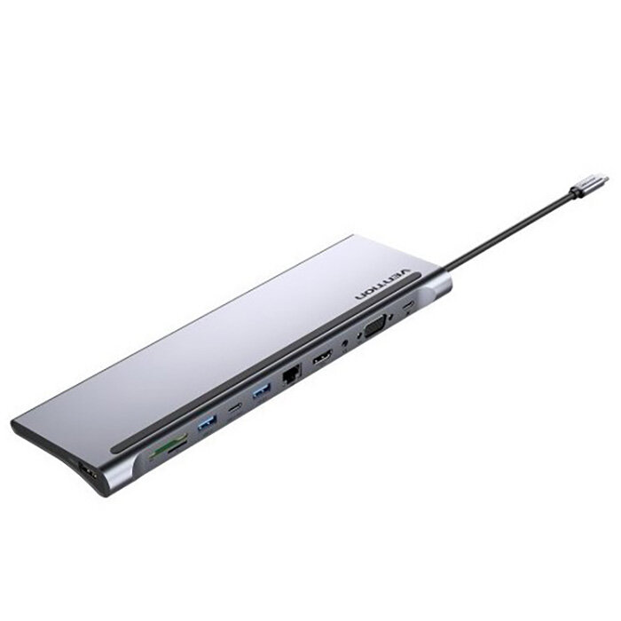 Док-станция Vention 11-IN-1 USB-C Docking Station (USB-C, HDMI, VGA, USB 3.1 Gen 1-C, USB 3.0-A x2, USB 2.0, RJ45, SD, TF, TRRS 3.5mm, PD) THTHC