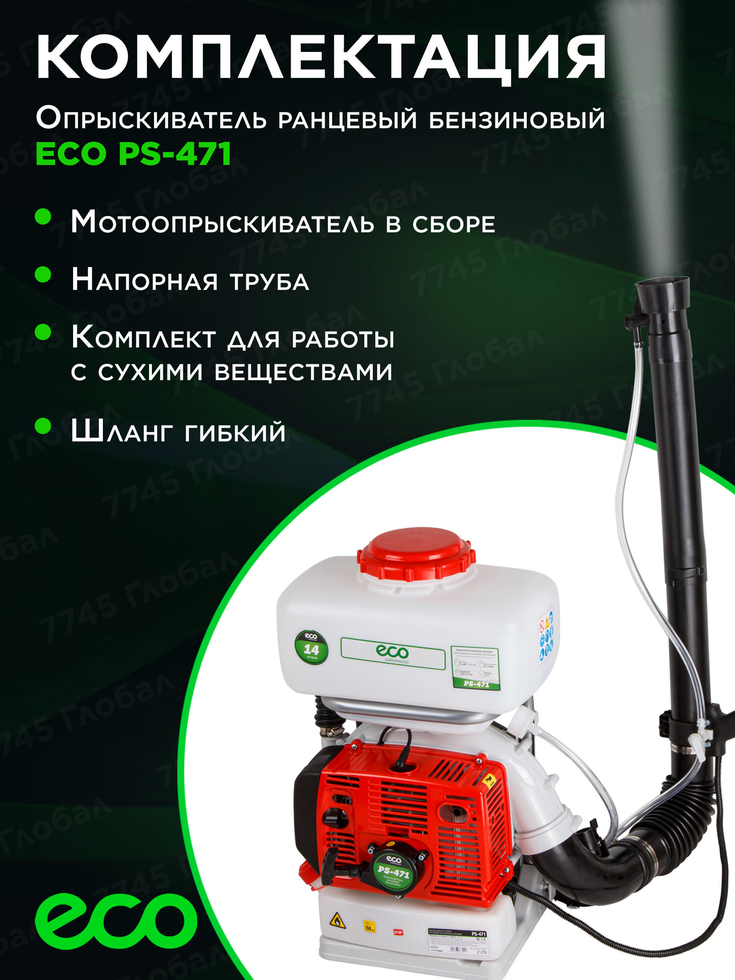 Опрыскиватель садовый ранцевый бензиновый ECO PS-471 EC1568-4, 14 л интересное: