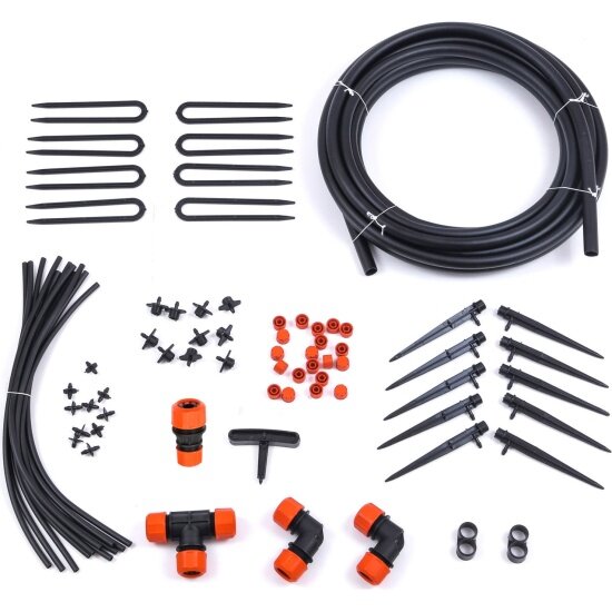 | Комплектация | Шланг магистральный 1/2" - 1 шт; Микротрубка - 10 шт; Муфта 1/2" - 3/4" - 1 шт; Цанговый тройник 1/2" - 1 шт; Цанговый уголок 1/2" - 2 шт; Микродождеватель - 10 шт; Микродождеватель с ножкой - 10 шт; Зажим для магистрального шланга - 2 шт; Прижим для магистрального шланга - 8 шт; Шило для магистрального шланга - 1 шт. |