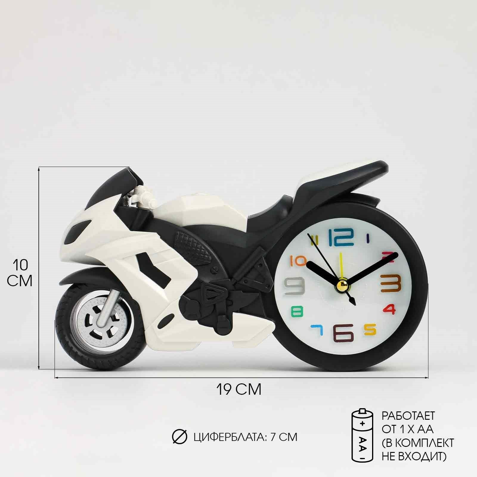 Купить 6 шт. Часы - будильник настольные «Мотоцикл» детские, дискретный ход, d-7 см, 19×10 см, АА