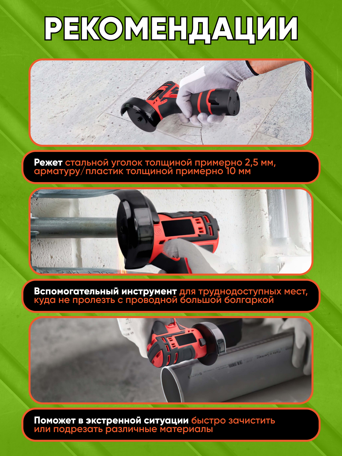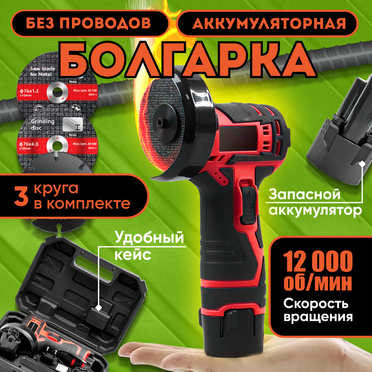 Ниже Вы можете прочитать отзывы на Болгарка аккумуляторная 12V 2Ah УШМ с плавным пуском и защитой от перегрузки, ознакомится с подробными характеристиками, посмотреть интересные обзоры и фотографии на Болгарка аккумуляторная 12V 2Ah УШМ с плавным пуском и защитой от перегрузки.