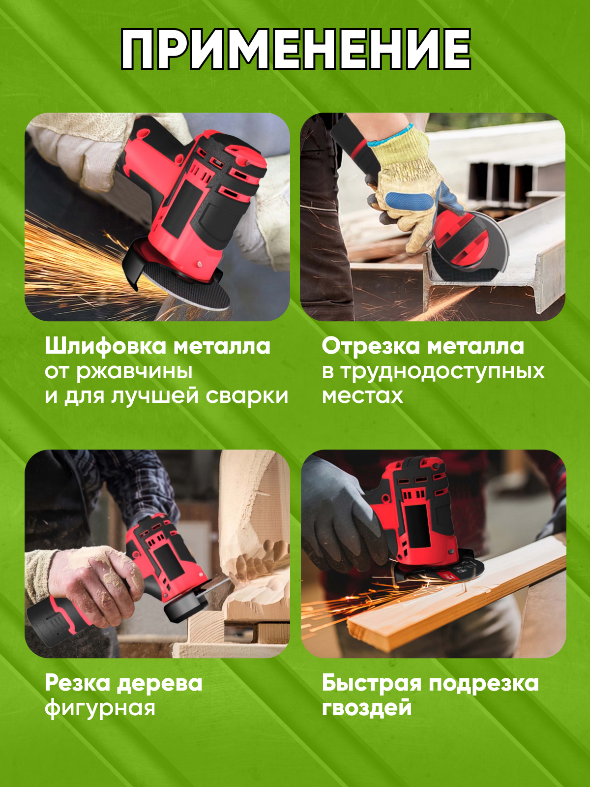Болгарка аккумуляторная портативная, УШМ, красная