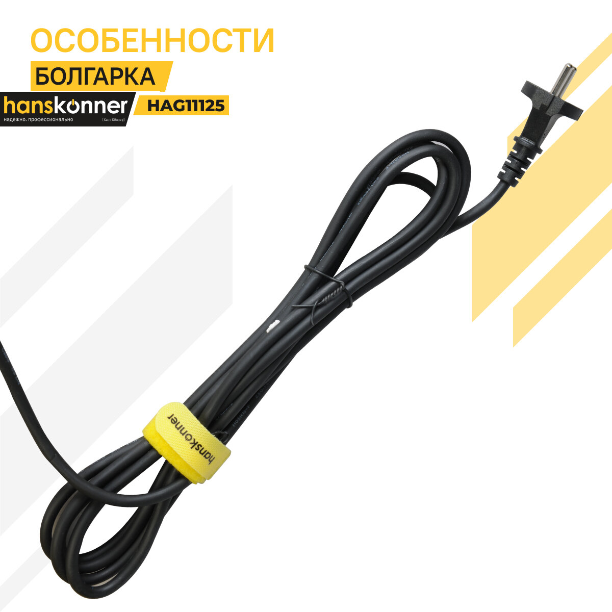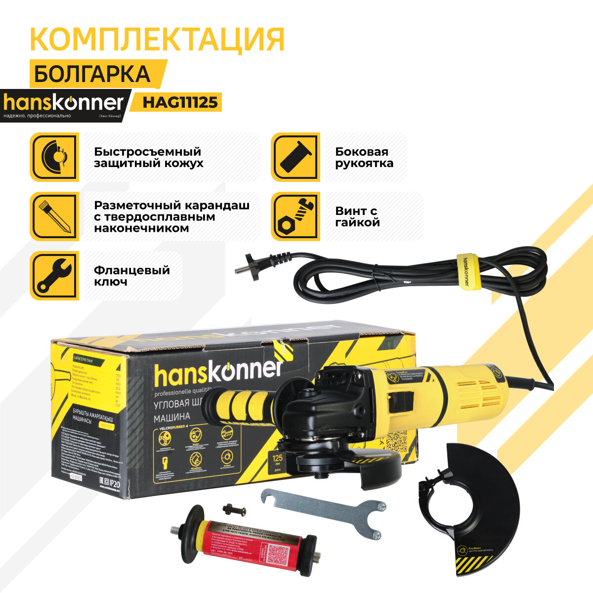 Hanskonner HAG11125 Машина углошлифовальная 125 мм,1100Вт,11000об/мин, быст.кожух,4м рез.кабель,Hans