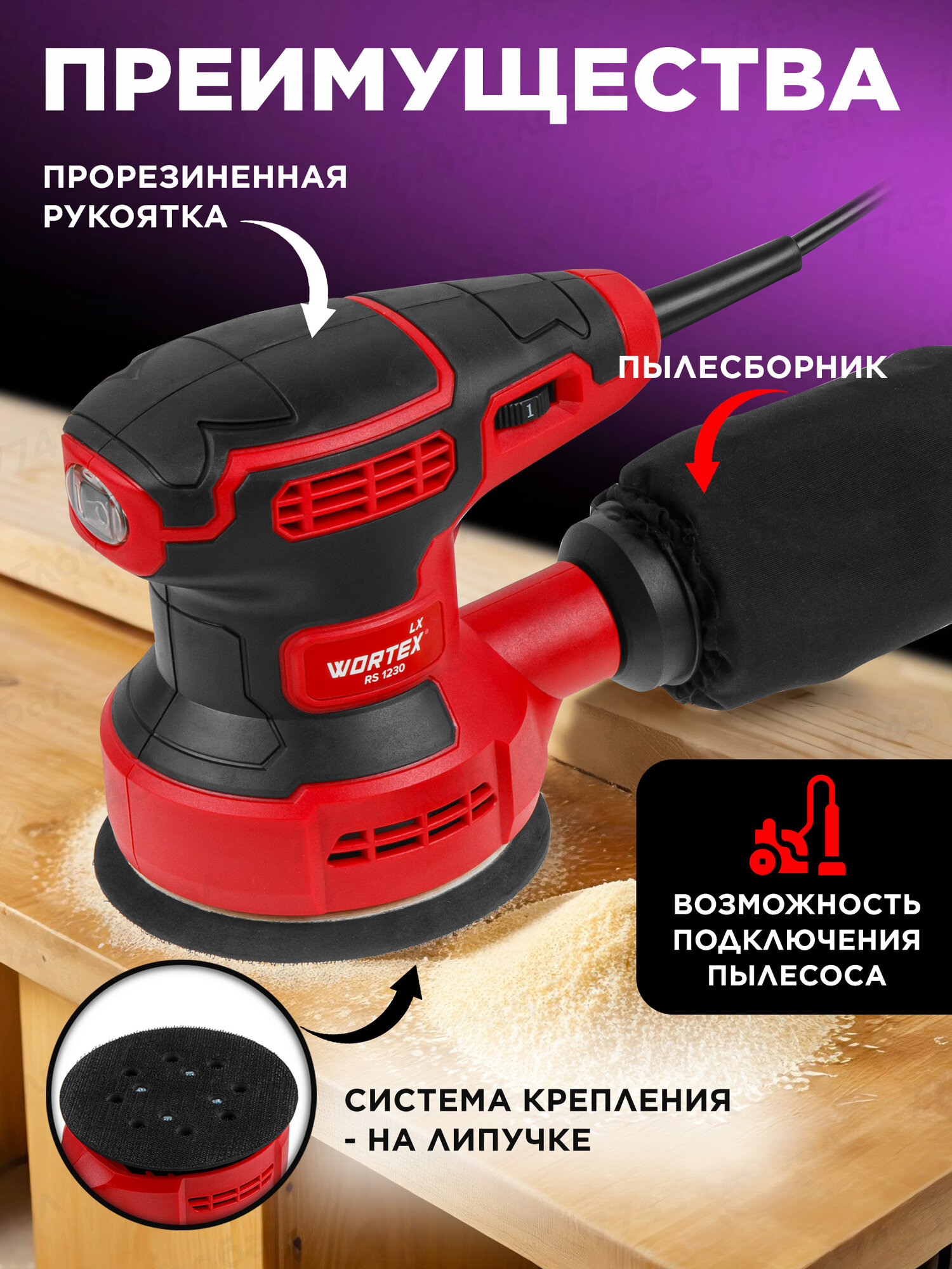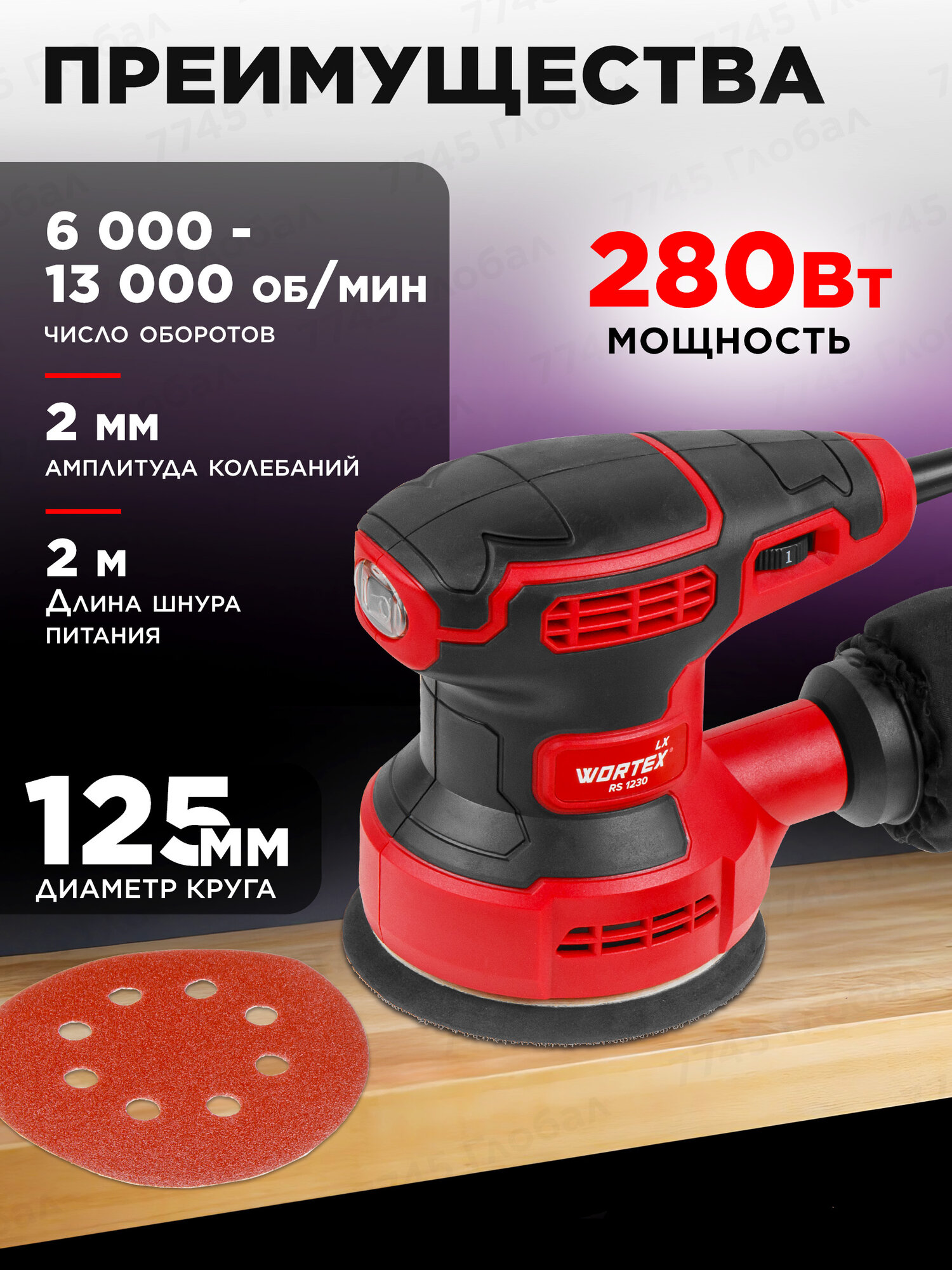 Шлифмашина эксцентриковая сетевая WORTEX LX RS 1230 280 Вт, 125 мм, 6000 - 13000 об/мин