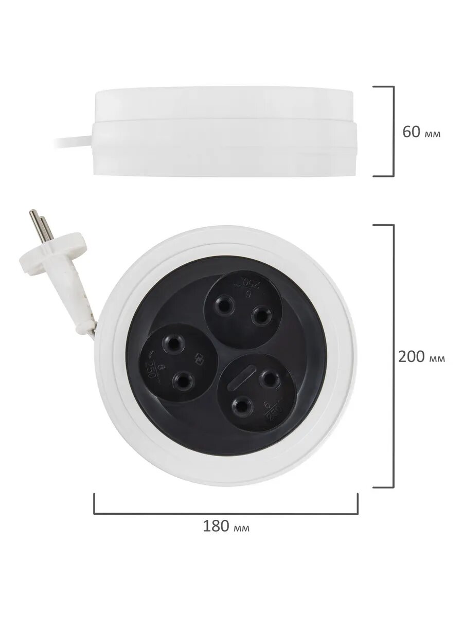 Удлинитель-рулетка радист эконом Р16-008, 3 розетки без заземления, 5 м, 2х0,75 мм, 1300 Вт, белый, 323 (арт. 512617)