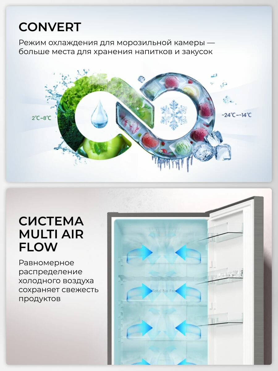 Холодильник многодверный Hisense RM469N4AFD1 полезный объем 368 л, функция Convert, технология Multi-Air Flow