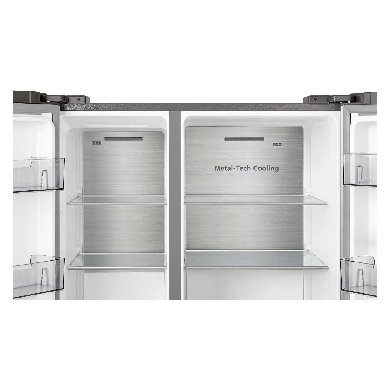 Холодильник Side by Side Hisense RS840N4AIF с функцией Multi Air Flow, общий объем 668 л, ECO режим, управление по Wi-Fi, инверторный компрессор