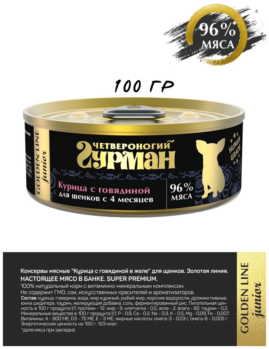 Четвероногий Гурман Golden для щенков Курица с говядиной в желе,консервы 100г (24 банки)