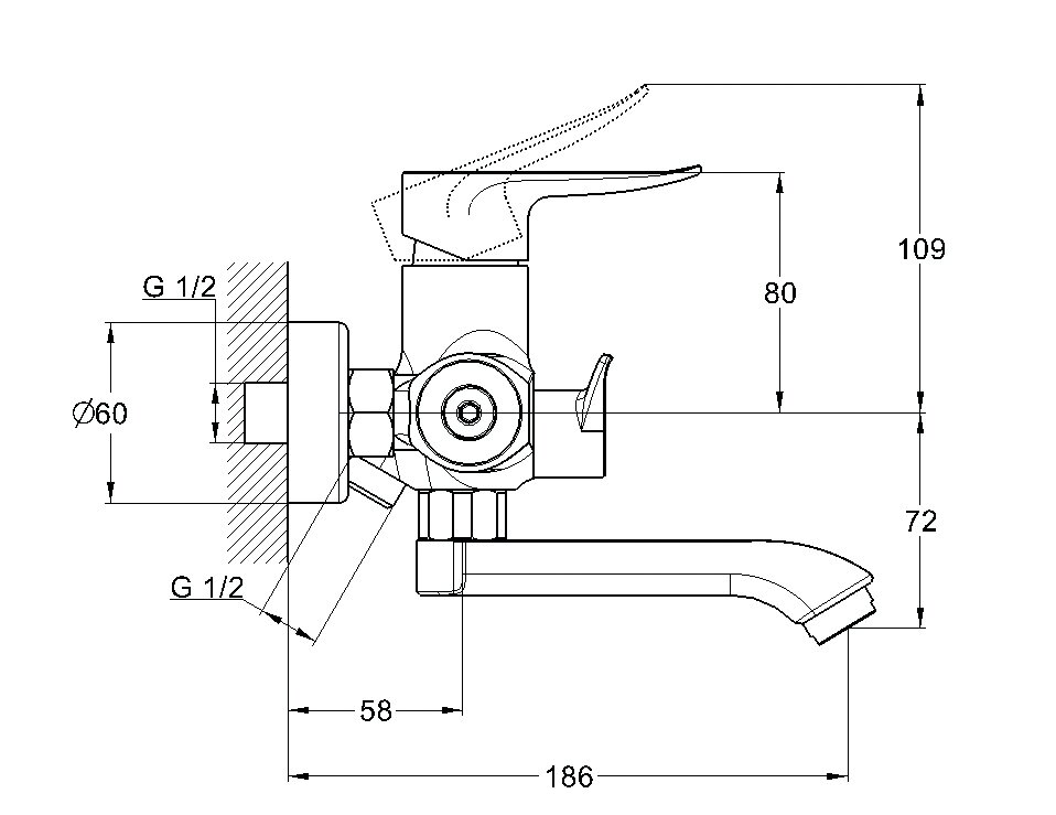 | Длина излива | 128 мм |