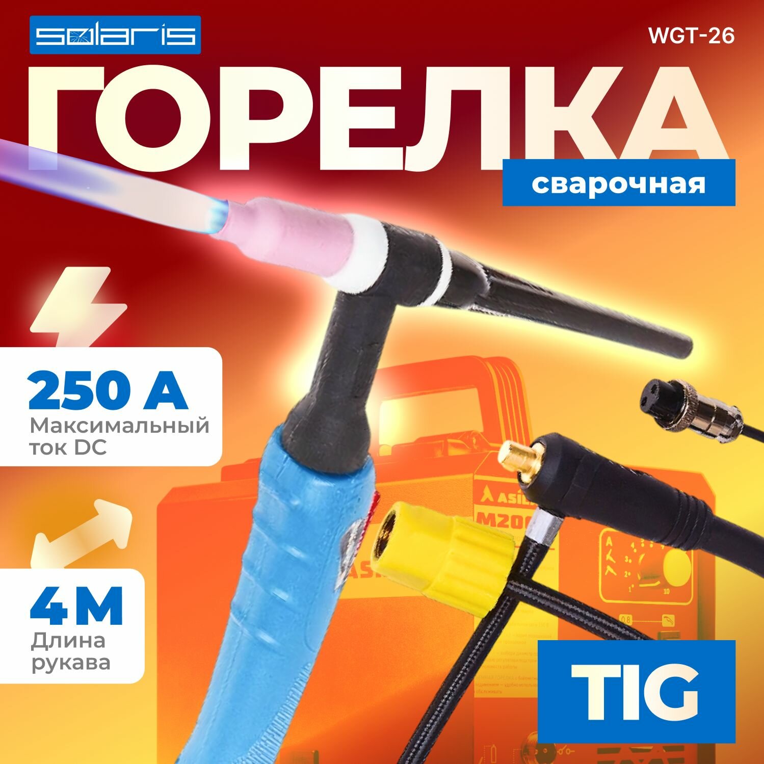 Горелка сварочная TIG WGT-26 (4м, 250А, разъем 10-25) SOLARIS (WGT-26425)