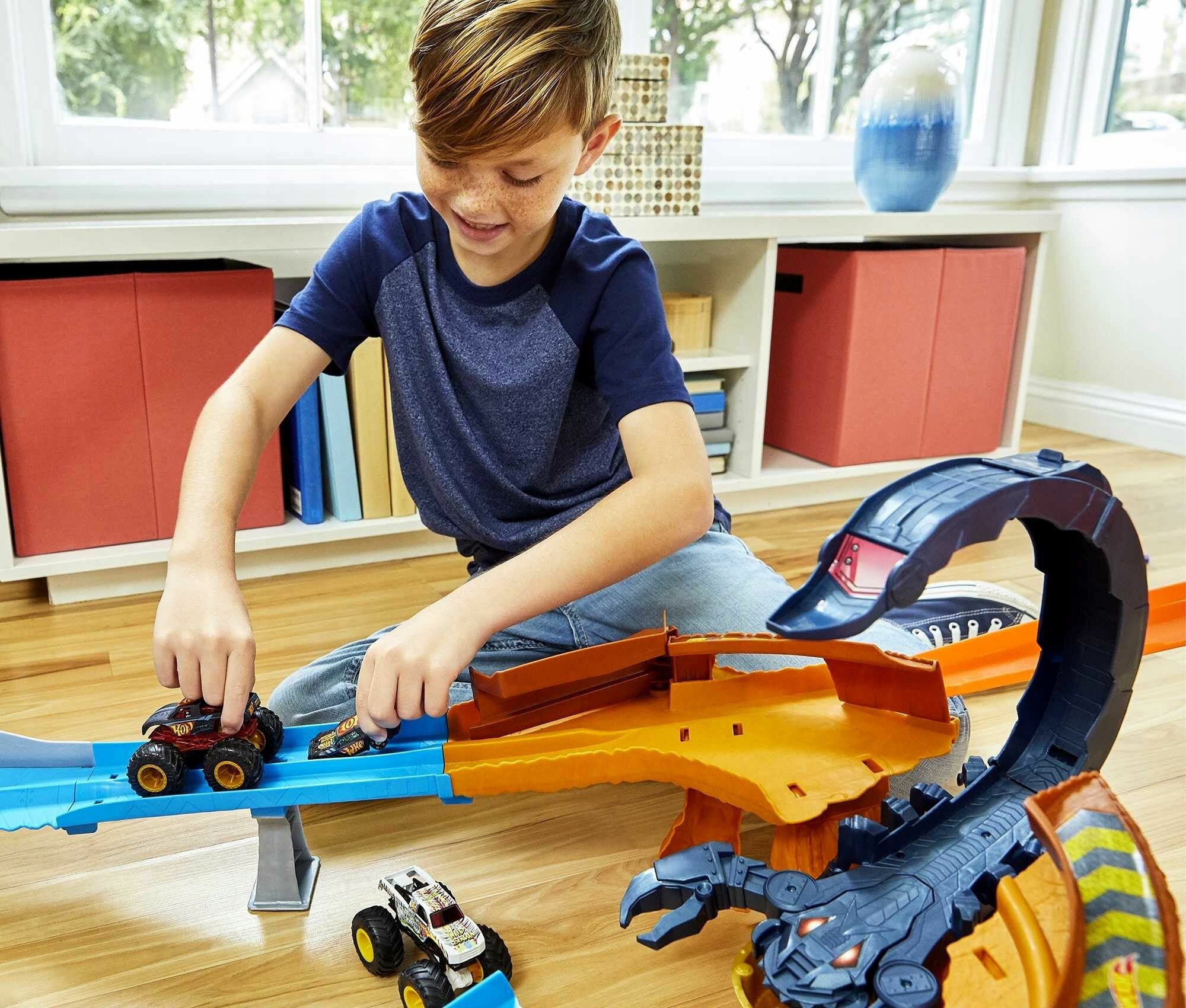 Игрушечный трек Hot Wheels Monster Truck - Автомобильная трасса Атака скорпиона GNB05 интересное:
