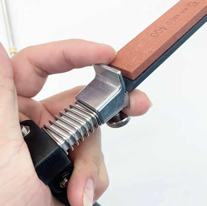 Плоскость вращения зажимного столика не совпадает с плоскостью зажатия ножа! С одной стороны точится градусов под десять острее, чем с другой. Фото разных кромок прилагаю. Резьбы одноразовые, винты лишний раз лучше не выкручивать