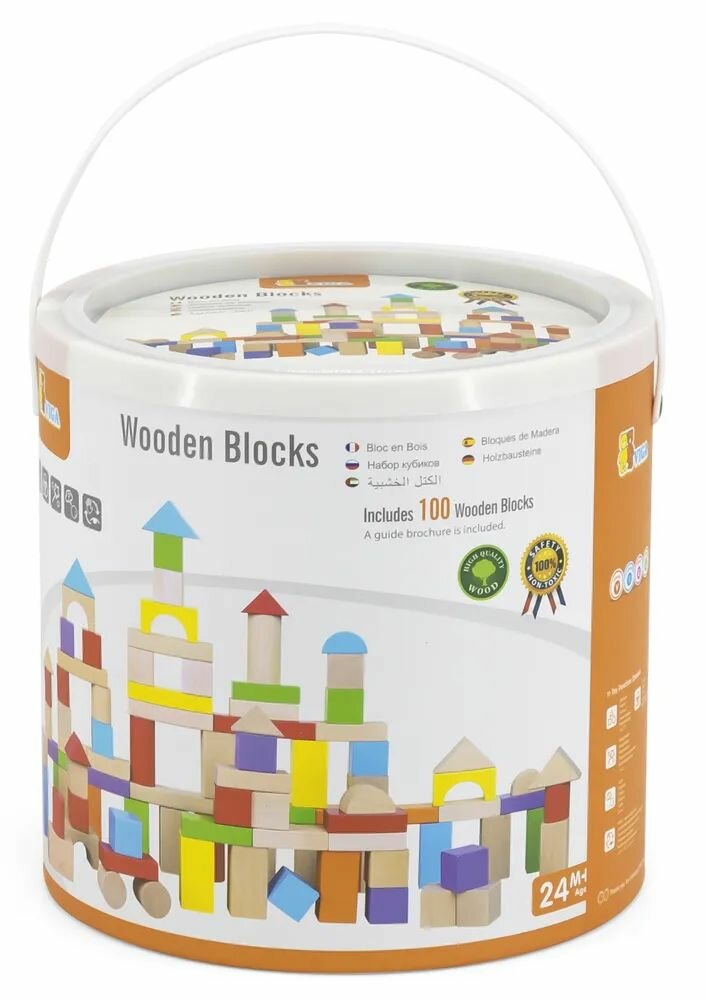 Купить Конструктор деревянный блочный (100 деталей) в ведре, VIGA 59697