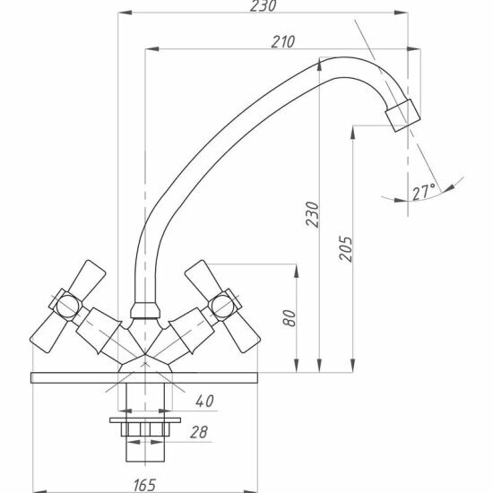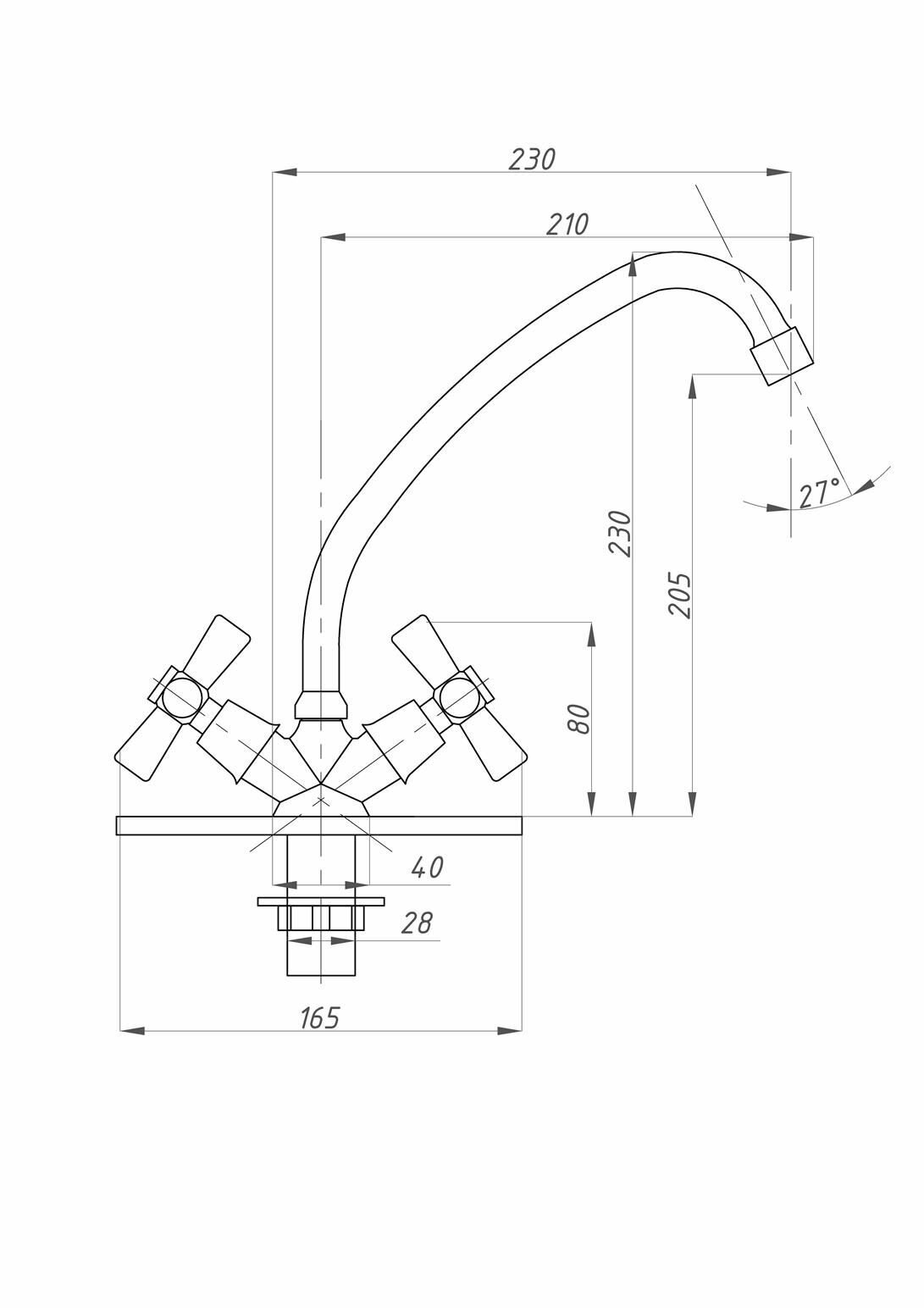 Смеситель для кухни Fauzt FZ 223-A18, двухвентильный, хром