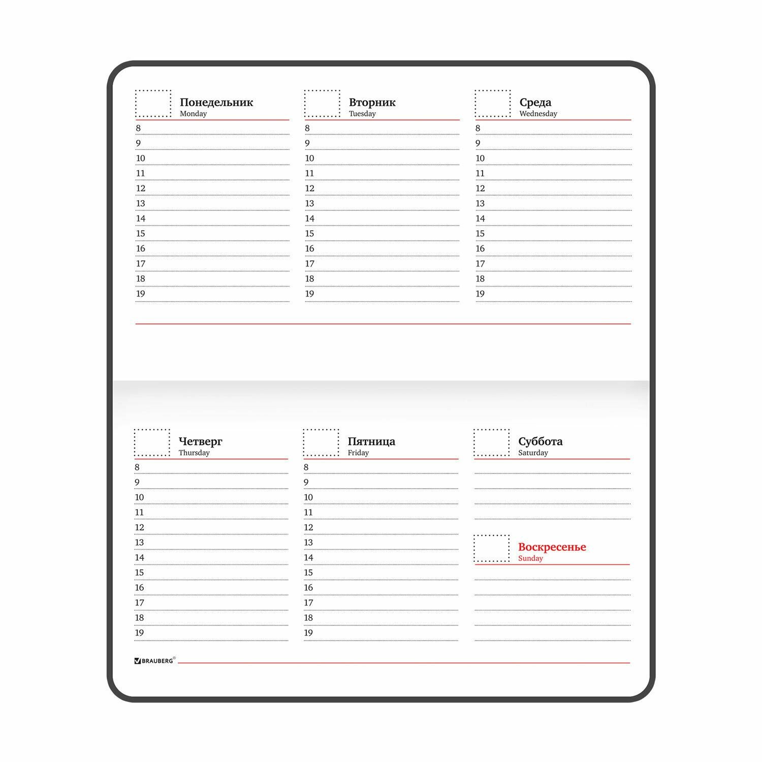 Еженедельник Brauberg недатированный малый формат 95х155 мм А6 "Rainbow", под кожу, 64 л, черный, 114485