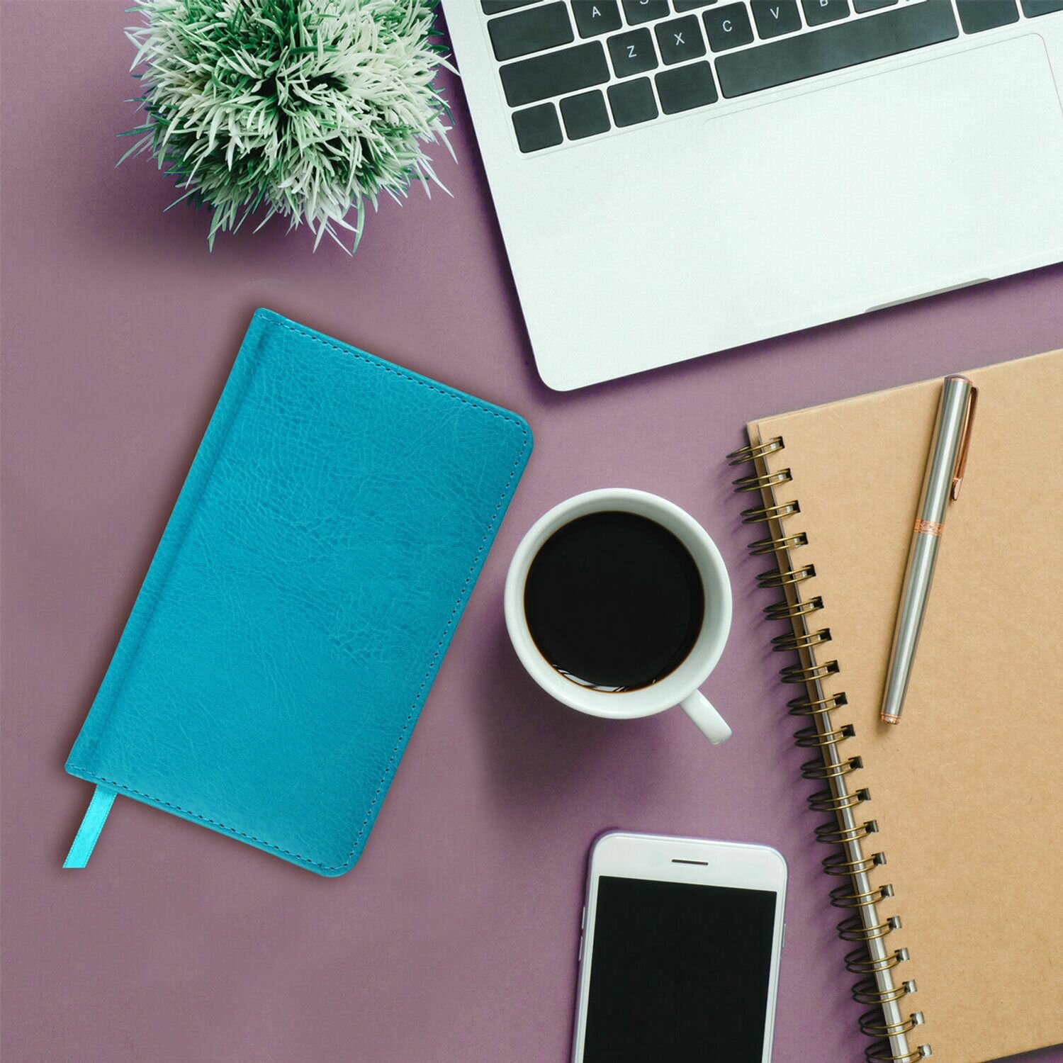 Еженедельник недатированный малый формат 95х155 мм А6 BRAUBERG "Rainbow", под кожу, 64 л., бирюзовый, 114483