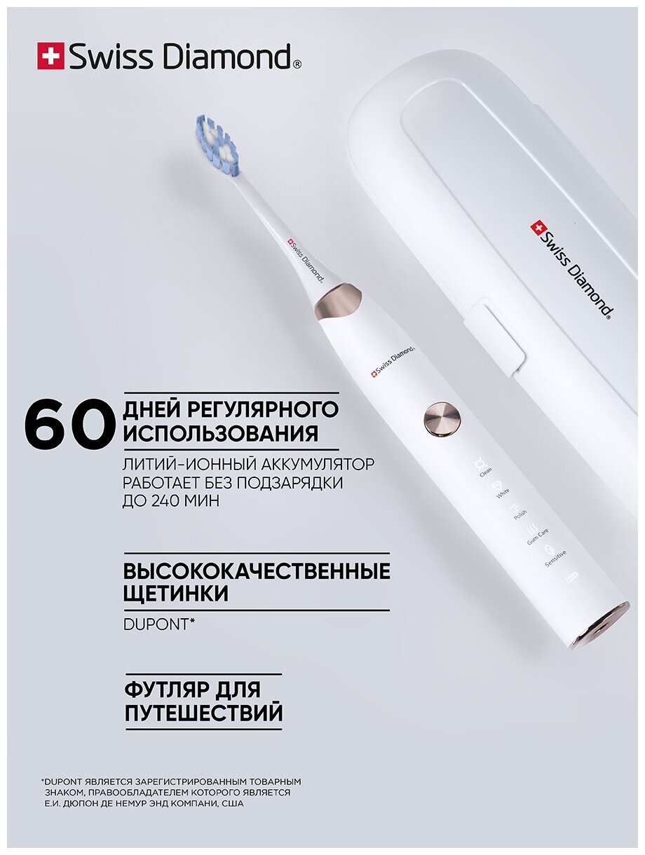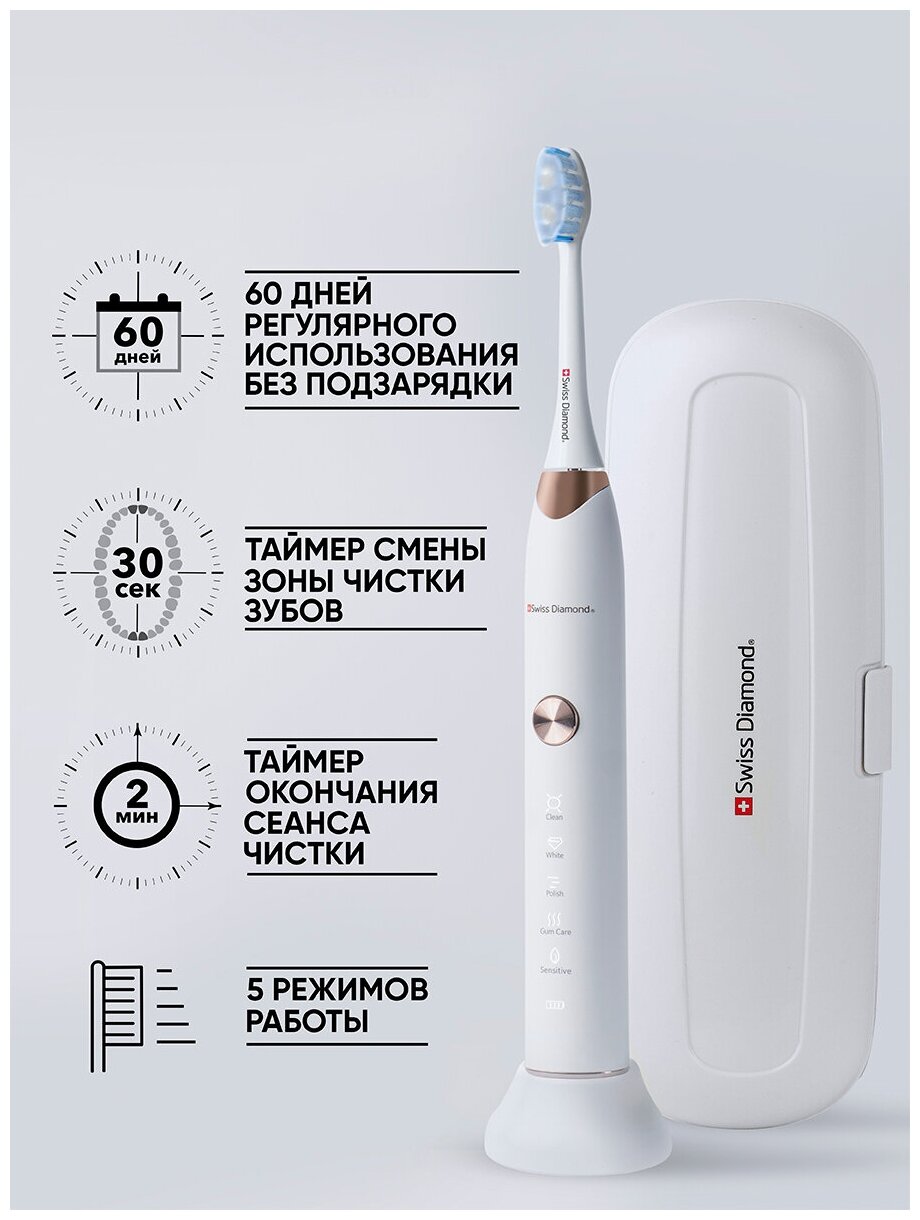 Электрическая зубная щетка "Swiss Diamond" SD-TB001 / зубная щетка белая / зубная щетка электрическая интересное: