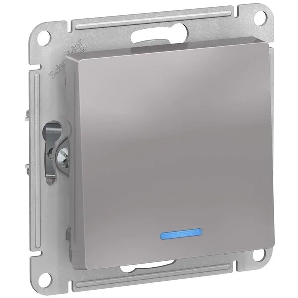 Выключатель 1-клавишный ATLASDESIGN, с подсветкой, скрытый монтаж, алюминий | код. ATN000313 | Schneider Electric (9шт. в упак.)