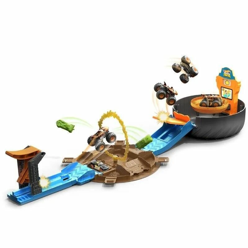 Игрушечный трек Mattel Hot Wheels Монстр Трак Трюкова арена STUNT TIRE TIGER SHARK/DRIFT ROD интересное: