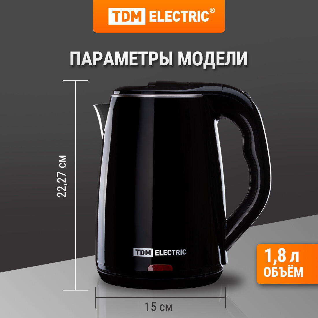Купить Электрический чайник "Ника", нержавеющая сталь / пластик, 1,8 л, 1800 Вт, черный, TDM ELECTRIC