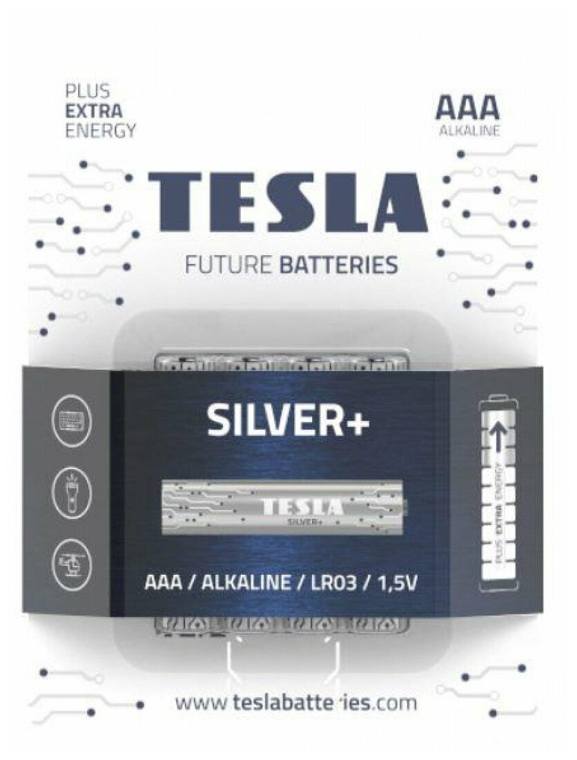 Батарейки Tesla SILVER AAA+4ks Alkaline AAA LR03, блистер /4 (8594183392363) интересное: