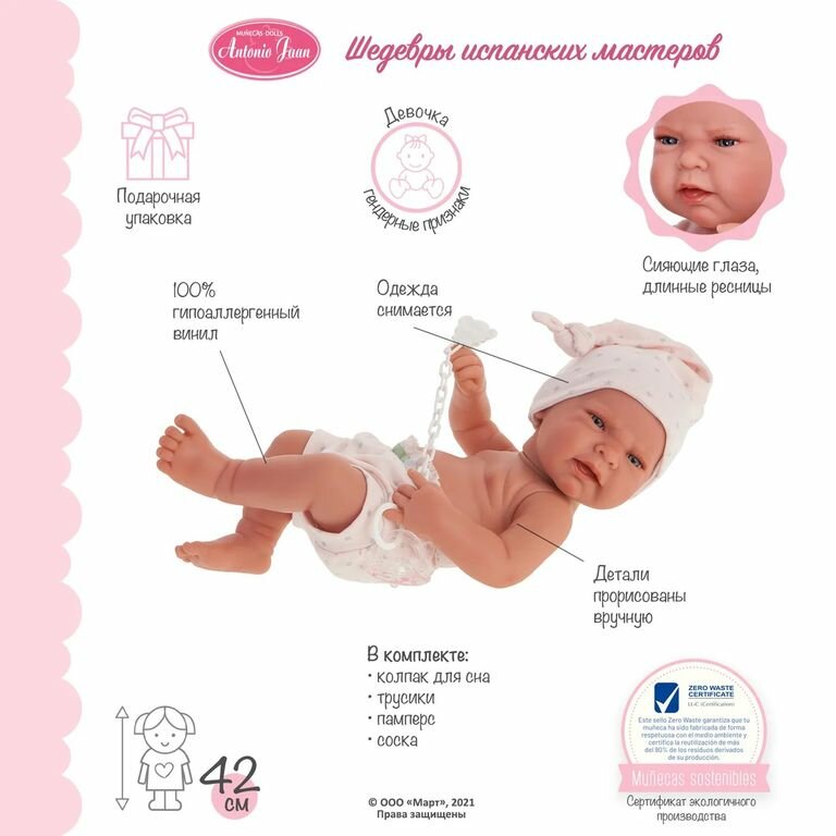 Кукла-пупс Antonio Juan Реборн Лина в розовом 42 см виниловая 5078 интересное: