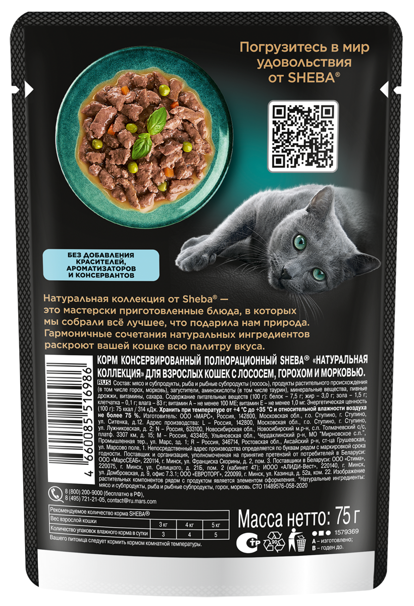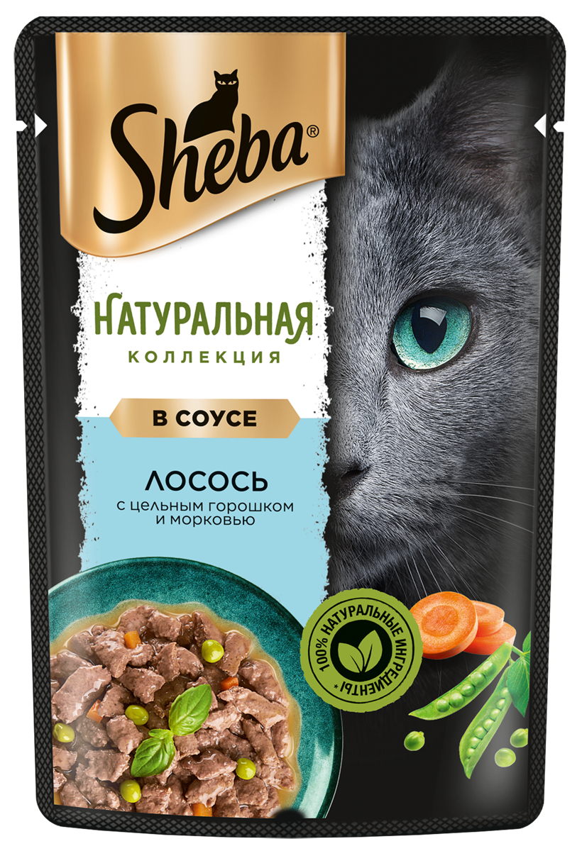 SHEBA 75гр Корм для кошек Natures Лосось с цельным горошком в соусе (пауч)